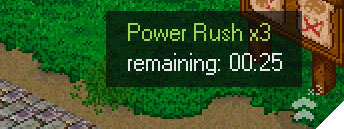 a crazy ammount of stacked server buffs, personal (stacking) powerrush buff on the right side.