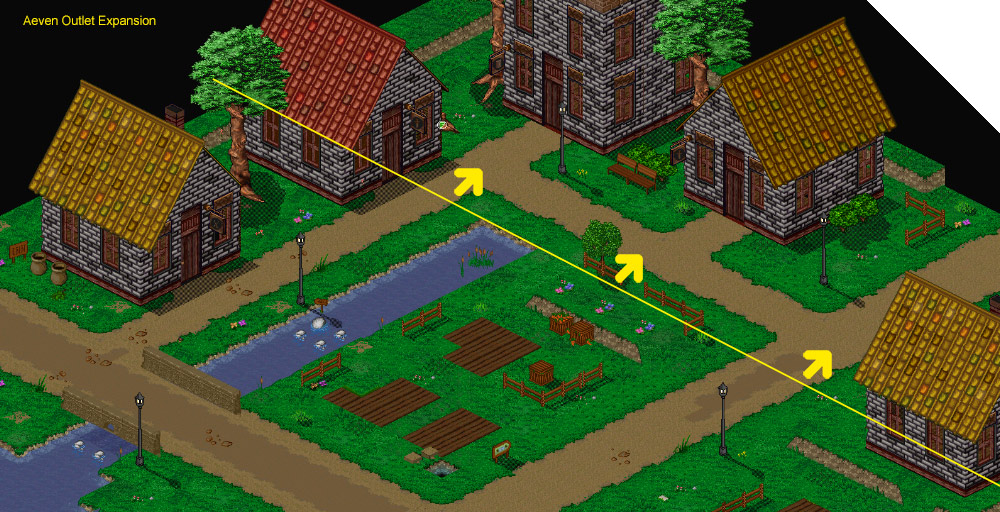 To accommodate the increasing number of features, shops, options, and crafts within the Aeven Hub, creative solutions were implemented to optimize space. For example, a decision was made to consolidate the boots, belts, and hat shop into a single building, freeing up one shop in the upper/left corner of Aeven for potential future expansion and making that area of Aeven town more interesting, as it appears to be an unpopular corner of the town..