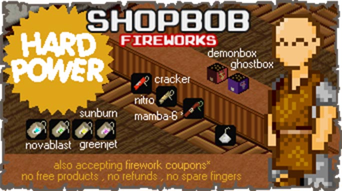 From December 29-31, the Shopbob Fireworks shop opens for a limited time. Spend your coupons and eons on crazy fireworks. Shady somehow imported the infamous Mamba-6, but is it legal?