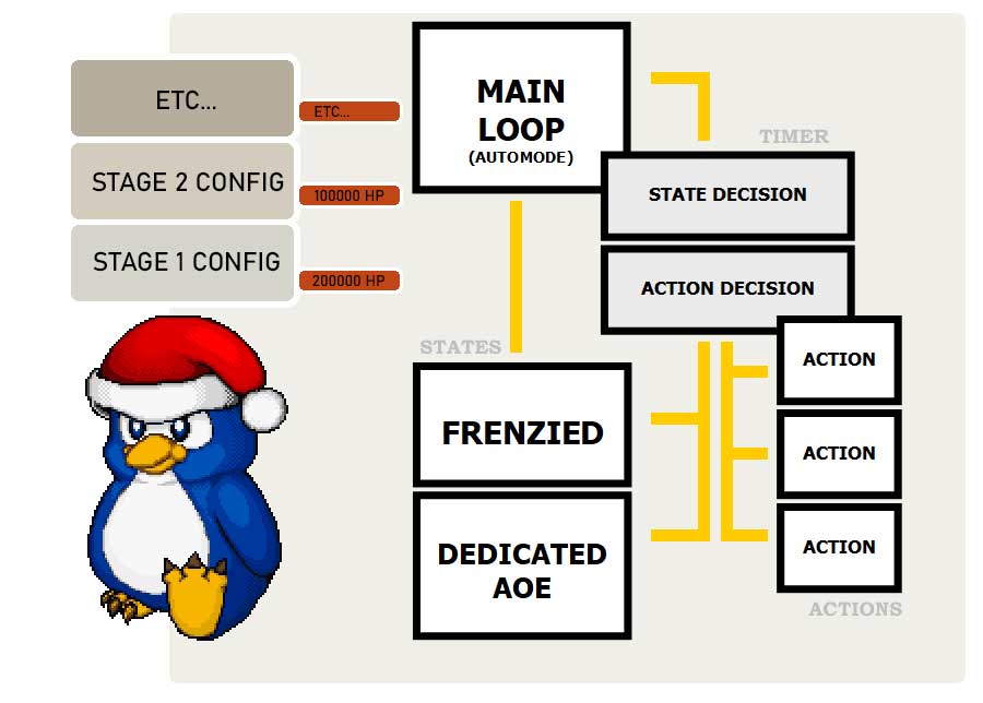 npc Stages hold a list of one or more decisions. These decisions alter the npc's main loop to a one-time triggered loop, which can be activated either upon entering the stage or by a timer while the npc is in the stage. Additionally, each stage has a list of possible actions, which are always triggered regardless of the npc's current stage or loop.