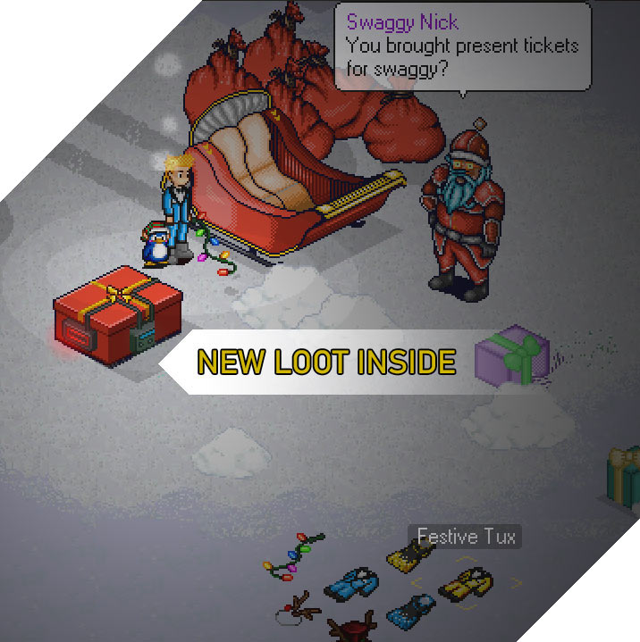 And 8 more lootable from the new Swaggy Nick lootchest, that can be opened with the tickets obtained from Mega Pengu: