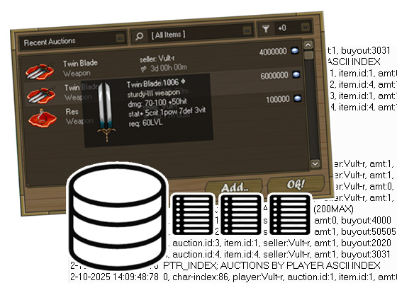 Performance is a key focus in this phase. The server is designed to load and sync all active auctions in server memory, with optimized indexing structures to handle lookups efficiently. This design should allow the Auction House to manage tens of thousands of listings without slowing down.