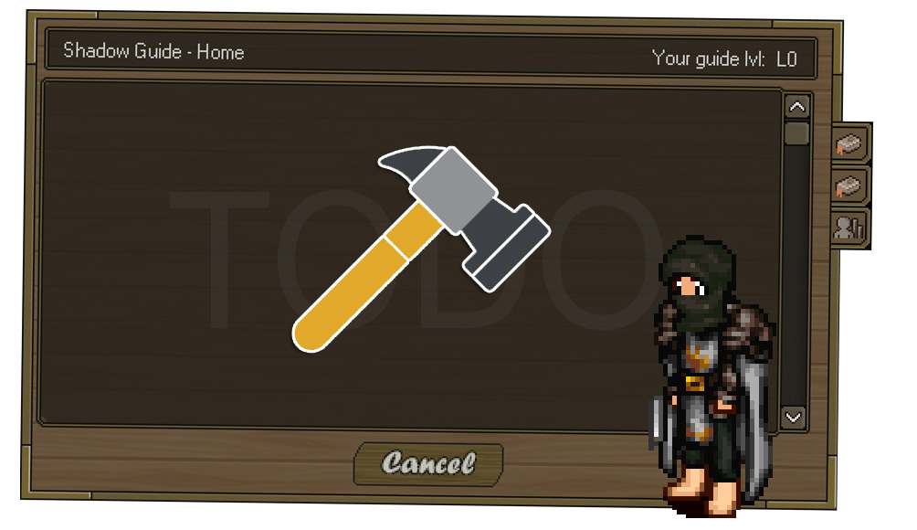 Once a player becomes part of the Shadow Guides, a new interface becomes available. This can be accessed by talking to any Shadow Guide NPC or by using the in-game commands #guide or #g.