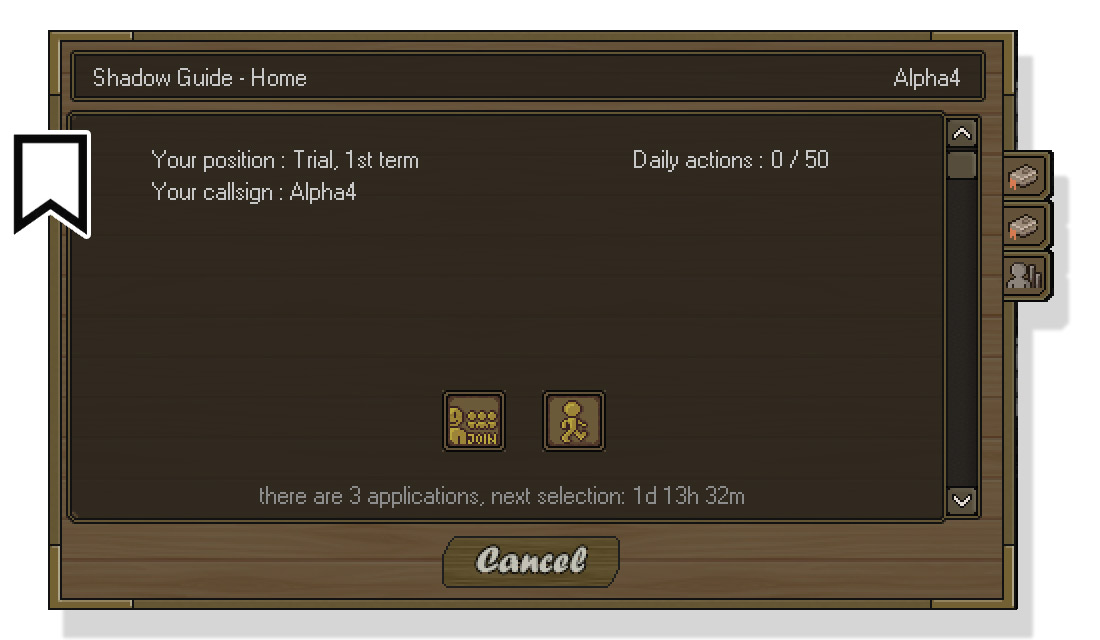 For non-guide players, the interface provides an easy way to apply or (re)apply for a week-long shadow trial term, keeping the system dynamic and fair.