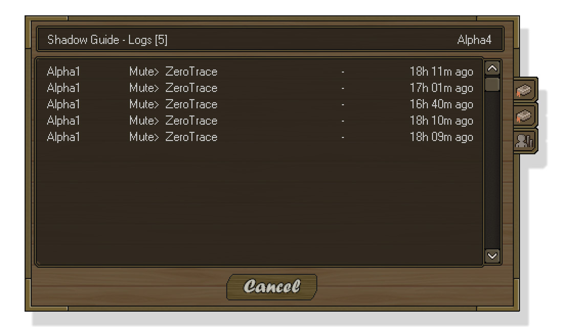 The second page is Logs, where all guide actions are stored in a list of logs and can be viewed in detail (by clicking on the lines) by any other Shadow Guide.